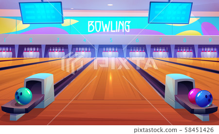 Bowling Alleys With Balls Pins And Scoreboards Stock Illustration 58451426 Pixta